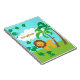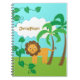 This personalized notebook has a cute children's design featuring a lion, two palm trees, white cloud, vines & leaves on a teal background. Customizable text allows you to add a name.