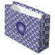 A great gift bag for gifts to give to fathers or grandfathers. This design features a blue pattern of lion heads and a customizable gift message.