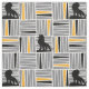 This gray, black, and gold square hatched pattern features silhouettes of Simba roaring proudly and posed looking back upon his kingdom.