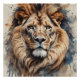 A Lion with detailed watercolor with expressive eyes is portrayed against a soft, blurred background. The natural colours enhance the lifelike appearance.