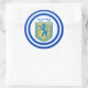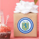 Round sticker with an image of a blue and yellow Lion of Judah emblem with Ariel in Hebrew at the top, and wide double blue borders trimmed in light blue on white. See matching confetti, label and wrapping paper. See the entire Hanukkah Sticker collection under the CARDS & STICKERS category in the HOLIDAYS section.