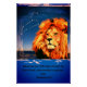 Revelation 5:5 is displayed with a beautiful and majestic tawny lion. In the background of this glossy poster the night sky and leo (lion) constellation are shown.