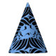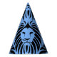 This party hat is shown in Blue with a Lion print all over this party hat.