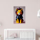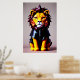 A cute and adorable yellow lion plush toy in black clothes. This is a AI generated art.