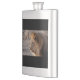 The product is a good size and came exactly as it was pictured. The lid is not attached to the flask, which could be dangerous on drunken nights... The print came out surprisingly well and looks very sharp. Would definitely recommend.
