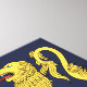 This design by Richard H. Fay features a heraldic lion rampant, a lion depicted in profile rearing up on its hind legs, ready to stave off all attackers.