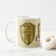Lion Shield Family Crest Surname mug by ArtMuvz Illustration. Matching Family Crest t-shirts,family name apparel and family reunion gifts. You can add your name or add text instead. Show off your love of your family name with this bold and eye-catching design, perfect for any genealogist, amateur or professional alike. It's also a great gift for anyone who is interested in learning more about their family history. Be the envy of your fellow genealogists. Make a great gift for any family history enthusiast. Customize this surname family crest mug to make it uniquely yours or to give as a personalized gift
