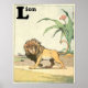 Alphabet letter L is for "Lion" with a bushy mane of hair, walking over his domain in the open desert savanna of central Africa. No other creatures are near when the king of the jungle is prowling. Drawings in this series by French artist Benjamin Rabier (1864-1939). "See on more products" with the link.