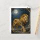 A lion themed postcard to say hi and keep in touch with friends and family while away. On the front is an illustration of a majestic lion walking through ancient dunes with the moonlight lighting up his golden fur.
