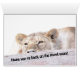 Back of card = Template: FILL-IN THE NAME OF YOUR LIONS CLUB for the back of the card. Lionesses peering out behind a kopje (granite rock), Serengeti National Park, Tanzania - photo by Christine Eichin, your safari expert, Above and Beyond Africa, while on safari in the Serengeti National Park, Tanzania (East Africa)