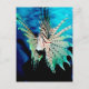A closeup of a beautiful lionfish in the deep blue ocean.