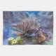 The lovely lionfish on this Kitchen Towel by ZoeSPEAK is swimming in a colourful saltwater aquarium. It is Zoe’s original photograph showing the pattern of thick and thin stripes and fancy fins on this unusual looking fish. It is a colourful photo with the tropical blue, yellow and pink of the aquarium and the salmon pink nose of the fish.