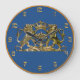 Es-tu à l'heure juive ? Parfait pour le bureau du rabbin. Cette horloge présente les Lions d'or de Juda sur un riche arrière - plan bleu.