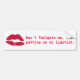 Funny bumper sticker for a woman's car. Big pink lipstick print and dark pink text reading, Don't tailgate me, I'm putting on my lipstick. It'll surely keep the drivers away from your car, but don't really do this.