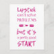 This design features the cute makeup related phrase "Lipstick Can't Solve Problems But It's A Pretty Good Start".
