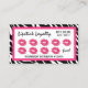Lipstick Distributor Zebra Kiss Lips Loyalty Punch Card