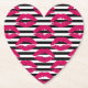 Lipstick Kiss B&W Striped Pattern Paper Coaster
