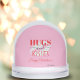 Our "Hugs and Kisses" Snow Globe offers a playful and affectionate way to share your love for any occasion! This charming design features a vibrant pink background with bold, eye-catching red uppercase letters for "HUGS" and "KISSES," elegantly connected by a decorative script "and." Below, you can add a festive phrase in a flowing, cursive style, such as "Happy Valentine's!", "Happy Anniversary!", "Thinking of You!", or any other special message that captures the essence of your celebration. For an extra special touch, a small personalized name can be included at the bottom, making this a truly unique and thoughtful gift.