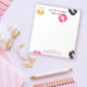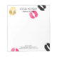 Chic personalized notepad with lipstick marks in pink, black, and gold. Customize with your name, title, and contact information.