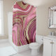 Dive into abstract fluid art with golden splatters on a pink marble canvas.
