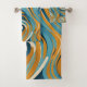 Liquid Swirl Ochre Blue Trippy Pattern Bath Towel Set