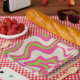 Liquid Swirl Retro Abstract Pattern Hot Pink Lime Paper Plate