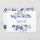 Cette belle et élégante carte de réponse mariage botanique présente des feuilles d'encre bleue tendance sur un arrière - plan blanc.