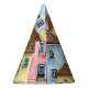 Lisbon Houses: Watercolor Funicular Pattern. Party Hat