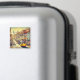 This artistic image of Lisbon captures the city's iconic yellow tram moving through cobblestone streets lined with colorful tiled buildings. The Ponte 25 de Abril bridge and a sunny blue sky complete the vibrant, lively atmosphere of this charming cityscape.