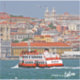 Lisbon skyline with old ferry on Tagus river