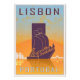 Lisbon vintage poster in orange and blue textured background with skyline in white