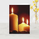 This greeting card has a peaceful image (I took) of three lit yellow candles with a reddish glow against a black background.