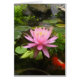 Beau Nénuphar rose avec poisson rouge orange