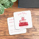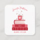 Cute white square contact cards with rounded corners for educators , featuring a stack of red books and a red cup of steaming coffee on top . Personalize them with your own info using the provided template . This design is also available in a standard business card format .