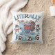 Funny winter accent pillow with the phrase "Literally Freezing" and an illustration of hot cocoa/milkshakes, snowmen, and candy canes. Perfect for anyone who loves the cold weather (or hates it!). Great for cozy home decor or a whimsical Christmas gift.