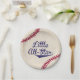 Use our "Little All-Star" baseball themed paper plates to serve your shower or party guests their food in a cute and personalized way. The wording is not customizable, but if you're needing that look for our other paper plates in this design for a version that has wording that is completely changeable.