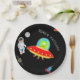 This cute outer space theme party plate features a little astronaut explorer taking a walk through space, along with little green men in UFO's, rocket ships, Jupiter and the moon all around him. In the background is the vast, black emptiness of space....(of course!). This cute plate has been designed especially to match an existing birthday party set with this design on, which also includes matching party invite, stickers, party hats and other party favours which you can see here: https://www.zazzle.com/collections/little_astronaut_in_outer_space_birthday-119253393331821240  (Oh, and the text 'Space rations' can be customized to suit, i.e. you could substitute a name in there or a date if you wish, or even removed altogether if needed). Thanks for looking! 👽