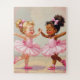 Cute puzzle with an illustration of two cute little ballerinas dancing together. One is Caucasian and one is African-American.