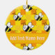 Little Bee Yellow and Orange Plaid Custom Name Ceramic Ornament