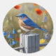 A delicate little Blue bird is perched gracefully atop a weathered old fence post in a field of beautiful wild flowers. This little bird is a symbol of freedom, tranquility, and the simple joys of the countryside, and this scene captures the timeless harmony between wildlife and nature.