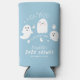 Blue Halloween Boy Baby Shower can coolers for a little boo's baby shower. Cute ghosts and tiny hearts on blue background with script type and easy to personalize customization.