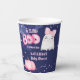 Little boo Halloween cute baby girl ghost baby shower tableware personalized paper cups. A cute baby ghost with a pink hair bow watercolor pink pumpkin on a dark starry night background for Halloween themed baby shower.
