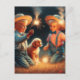 Personalized Happy Independence Day postcard for family or business. Cute little boys playing with sparklers on Independence Day with their little puppy by their side on a July 4th night. Cute old-fashioned vintage 1950's era vibes.