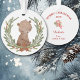 This is an adorable Christmas ornament for grandparents to give to a special grandchild, but it can be easily customized as a gift for anyone. The front of the ornament has a watercolor image of a little brown bear sitting within a pine needle, holly, and red berry wreath. The back of the ornament has your custom text in red. The text fields are separated by a small candy cane and holly bouquet. Easily change the text to anything you'd like!