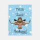 Personalize this Little Cowboy's "One of a Kind" Boy's Fleece Blank! It Features a Comical Longhorn Steer Wearing a Western Cowboy Hat with a Sheriff's Star on a Blue Background with White Star Surrounded by the Words...."Little Buckaroo"!
