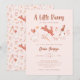 Cute girl's baby shower invitation card featuring bunnies, carrot and flowers. The text says "a little bunny is on the way."