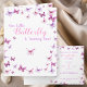 This pretty pink and purple butterfly themed folded birthday invitation is perfect for a baby girl's "Our Little Butterfly Is turning One" party. It features a butterfly pattern on a white background, and text that you can customize with your own details. The invitation template is customizable in the listing editor.