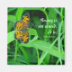 Beautiful, colourful photograph of a tiny orange and black butterfly (Pearl Crescent) on blades of bright green grass. Features an Emily Dickinson quote: "Beauty is not caused. It is." Or, you can personalize it!