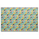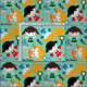 Little Cheerleaders fabric, a cute, fun cheering design on an aqua blue background featuring cheerleaders with uniforms and pom poms of orange, green, red, and blue, megaphones, ribbons, and text that reads Go Team and Rah!