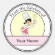 Illustration of a little girl chef / cook feeding her kitty gourmet pet food. Very cute image on this product. Other chef designs are available.